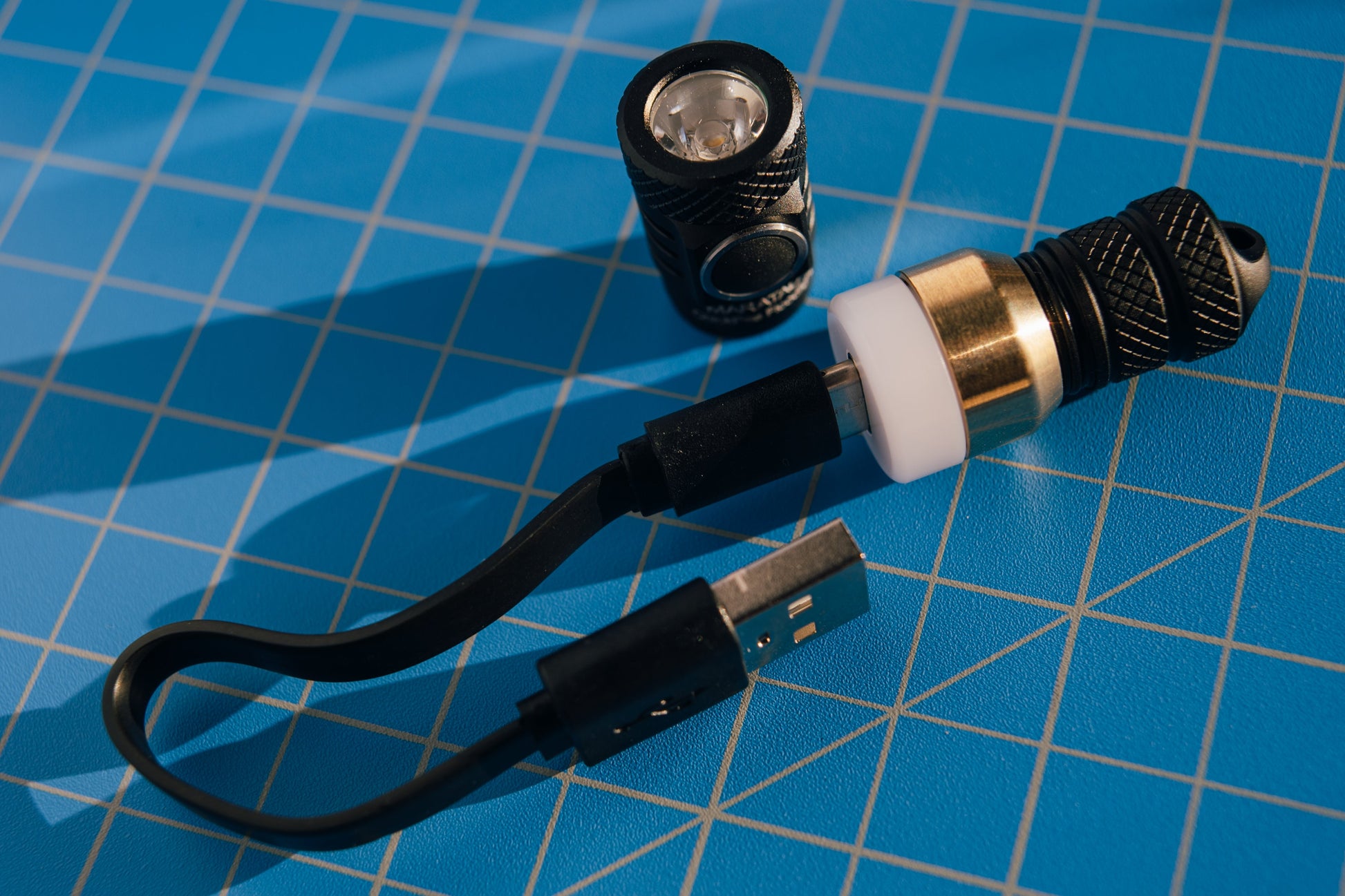 JUST CHANGE TO THE CHARGING BRASS ( BUTTERY SMOOTH ) HEAD TO CHARGE THE LIGHT AND YOU'RE ALL SET TO KEEP ON TREKKING.