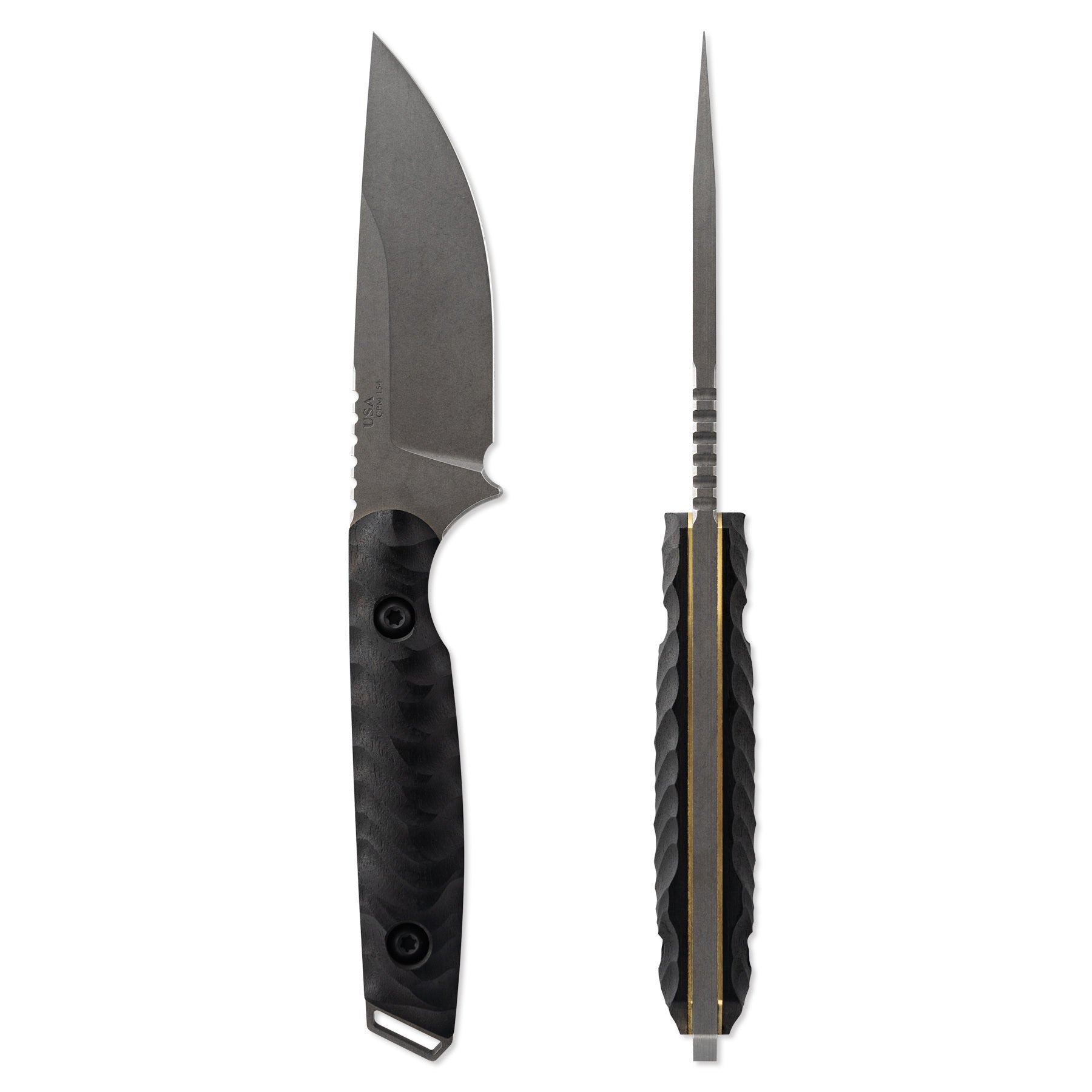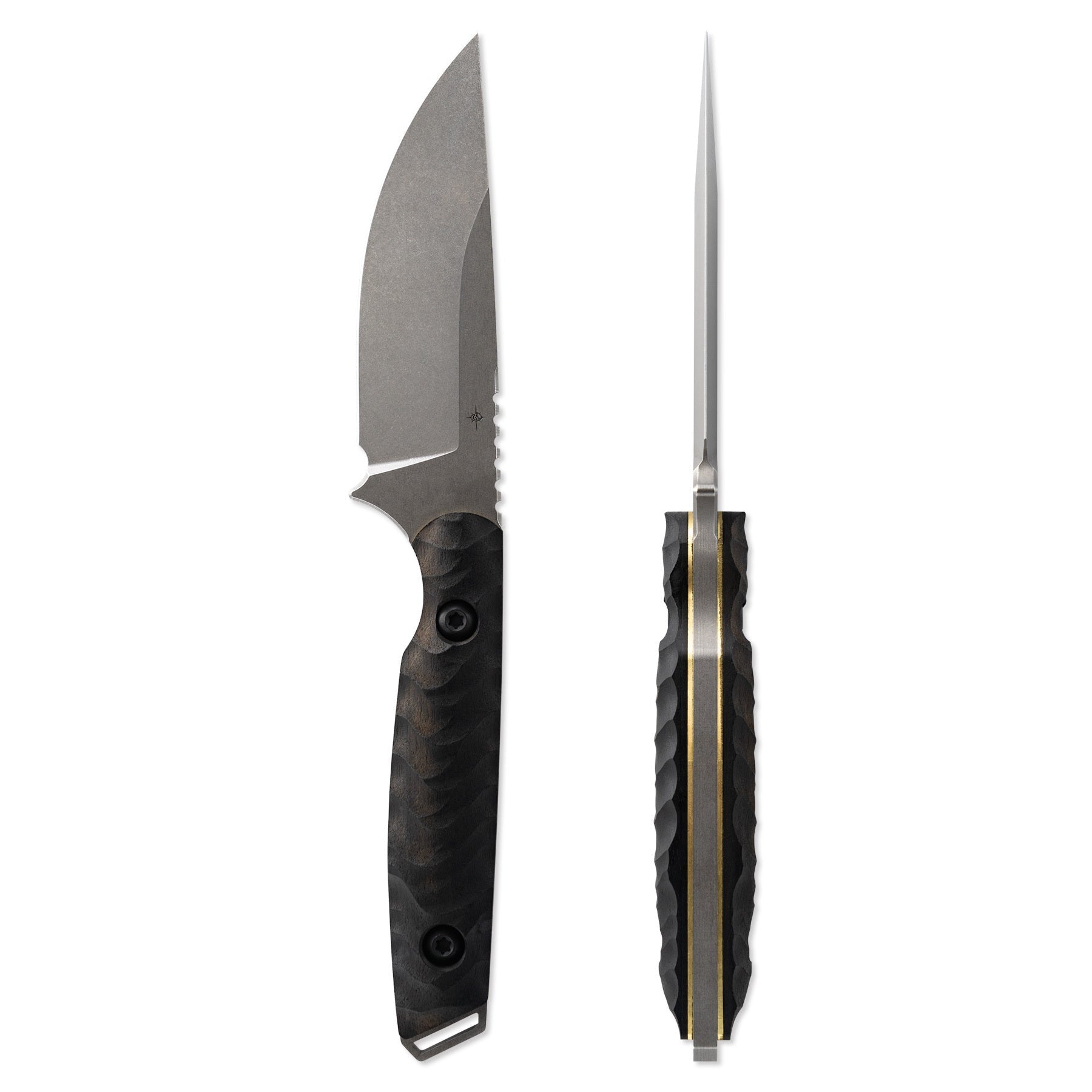 The Field 3.0 Stone features a stonewash finish on the blade, with premium Brass liners, and ebony handles. While the profile has been slimmed down, the blade shape still allows for a significant steel mass behind the edge, which translates to a longer sharpening life and edge impact resistance.